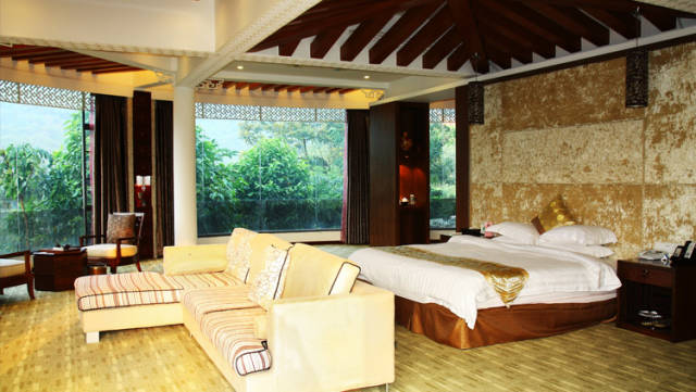 依山而建的紫莲别墅,饱览山水美景,现代化设备与原始的环境完美结合,时尚简约的山水田园客房,以及不同规格的标准双人房、豪华双人房、商务套房和豪华套房,让您有恣意的休闲空间又不被打扰。 碧水,蓝天,空气的小新鲜。爬爬山、涉涉水。长时间的忙于工作的您,该为给健康加分了。